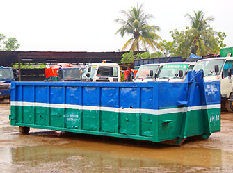 | RORO Bin 22 cu.yd- 6 FOOTER 18’ (L) X 8’ (W) X 6’ (H) MAX LOAD: 20 TONS (10 WHEELER) CONSTRUCTION WASTE MAX LOAD: 14 TONS ( 6 WHEELER) FACTORY & BULKY WASTE |
