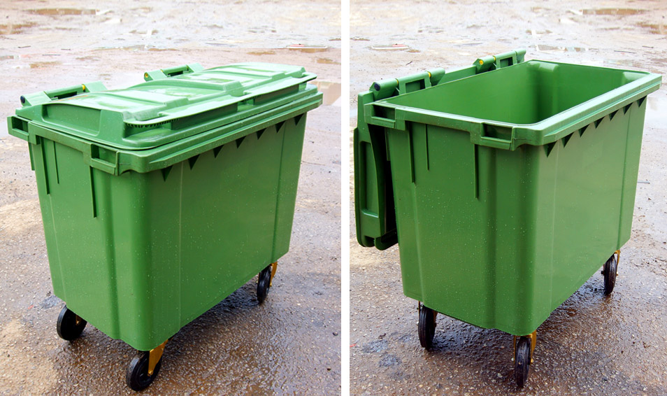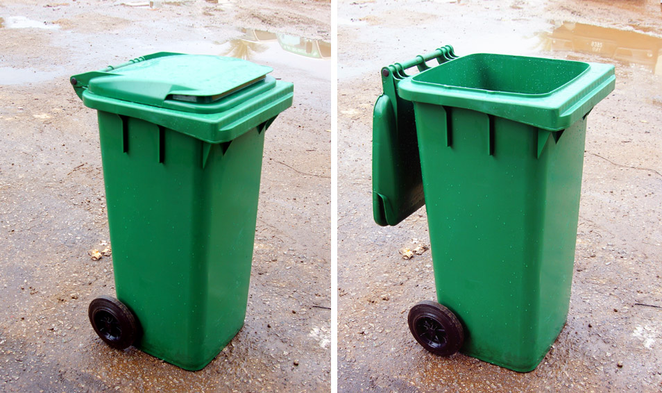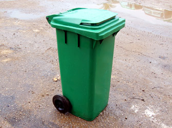 | Plastic Bin 120L 950mm (H) X 480mm (w) Lidded and wheeled bin suitable for household garbage collection. |